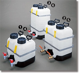 ■本体、ハメ込み式架台もポリエチレン製。耐衝撃、耐薬品性にも優れあらゆる用途に使用出来ます。