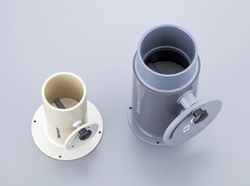 <风量调节器> - 有安装在管道软管中间的中间型和直接安装在风扇组件・通风柜上的法兰型2种。
