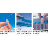 - フィルタ、オートサンプラー用バイアル(12×32mm)、セプタムが一体型となったポリプロピレン製のバイアルで、濾過後そのままオートサンプラーにかけて分析が可能です。