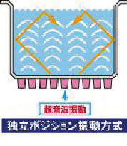 - 独立ポジション振動方式により、洗浄槽の底面から超音波が発振度れ洗浄ムラを防ぎます。