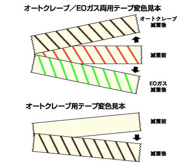 - AE-18、24は1本のテープでオートクレーブ(橙→黒褐色)、EOガス(橙→緑色)の両方に使用できます。