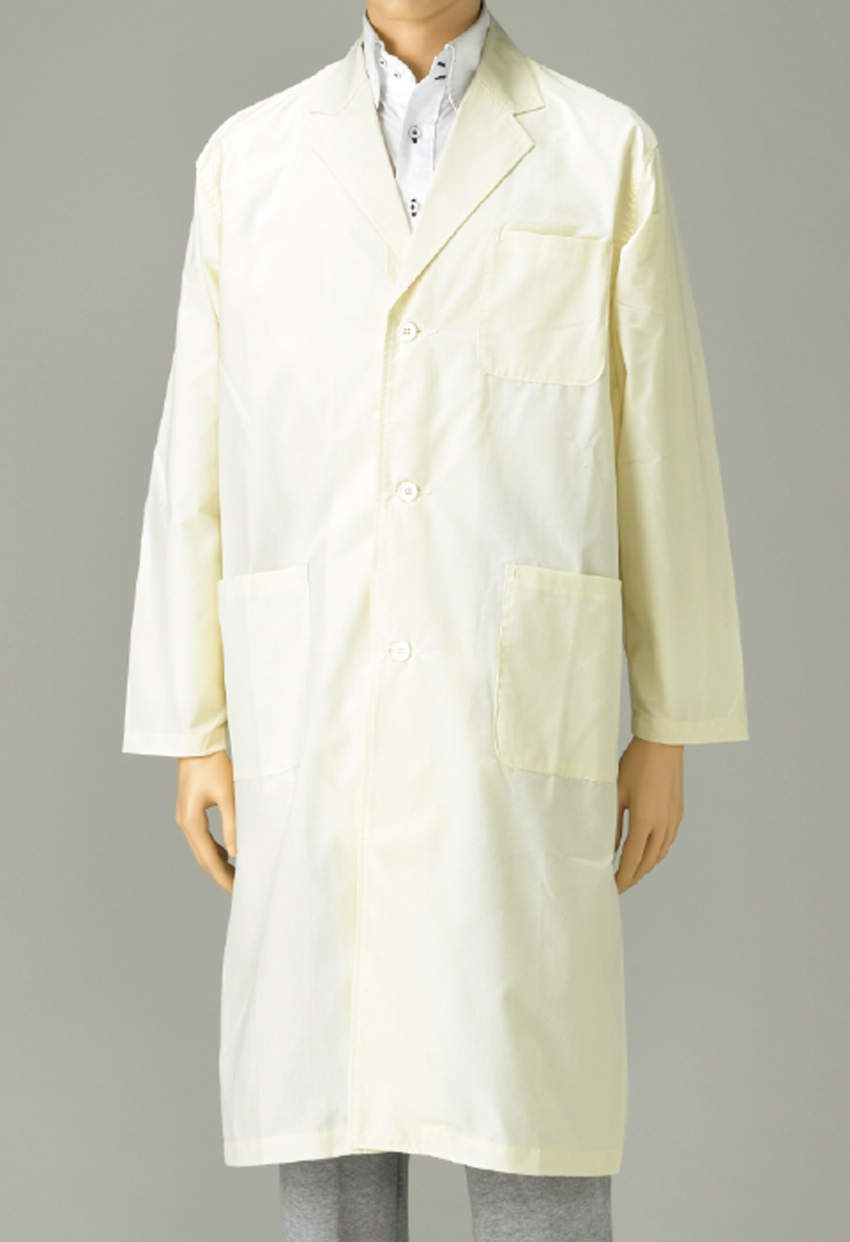 - 耐熱・耐薬品性に優れた白衣です。