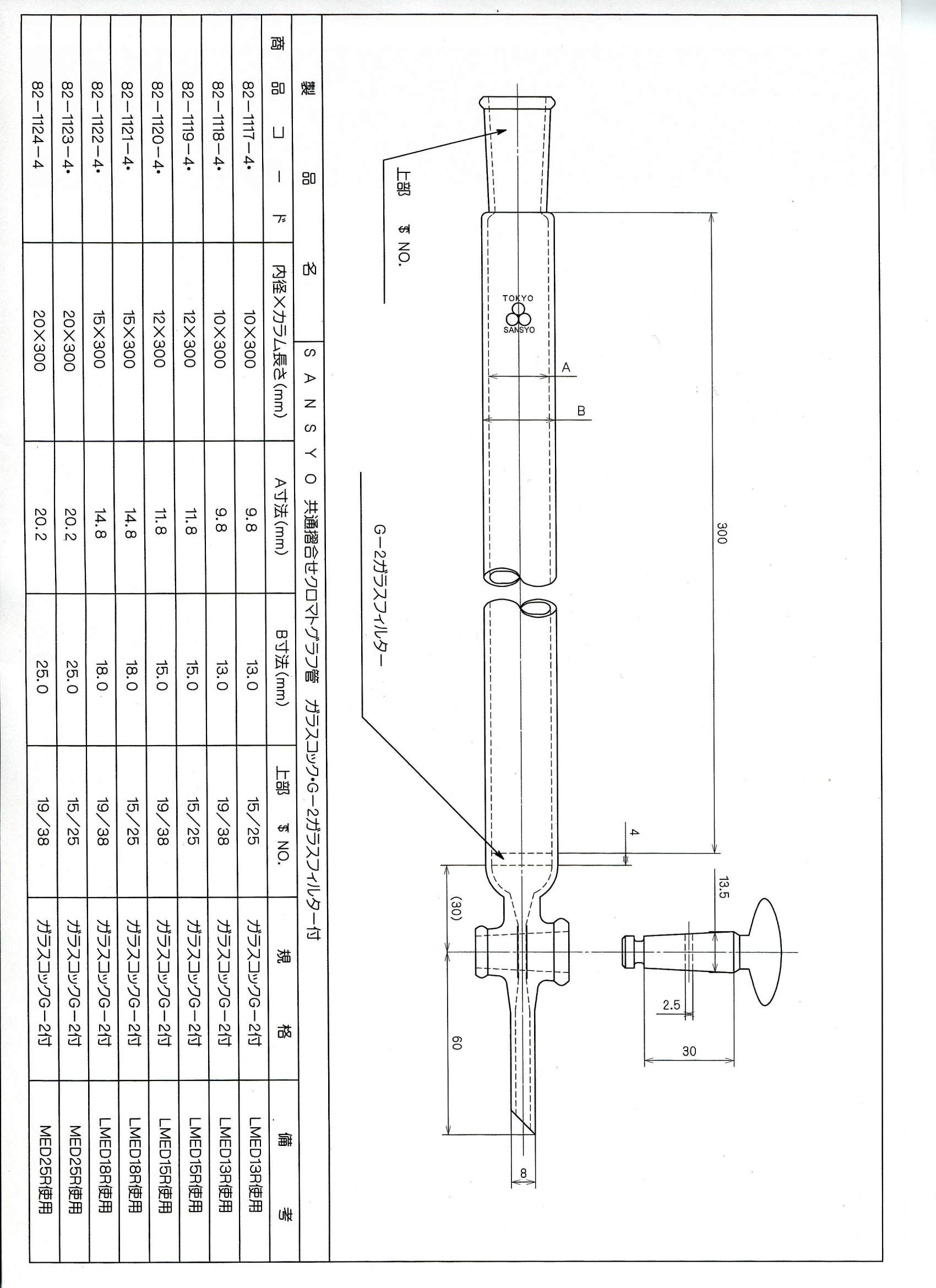 | 商品名称 | SANSYO共通摺合せクロマトグラフ管 G-2ガラスフィルター付タイプ |