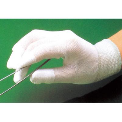 - 長繊維のウーリーナイロン糸を使用した低発塵性手袋です。
