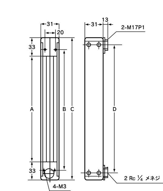 | 接続口 | 標準:RC1/4メネジ,オプション:φ6ホースニップル、φ8ホースニップル、1/8"スウェージロック、1/4"スウェージロック |