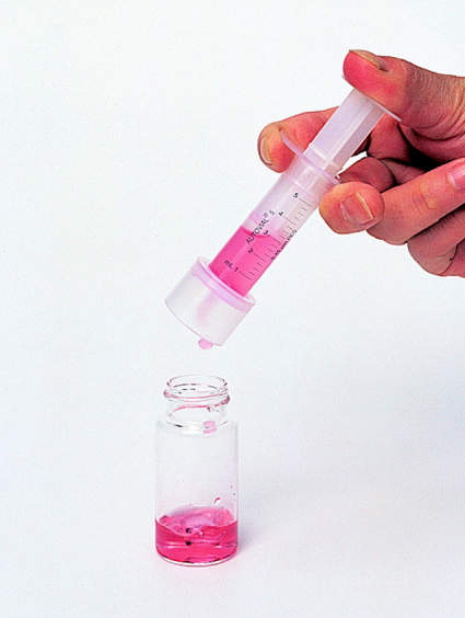 - シリンジとフィルタ一体型のユニット。フィルタがハウジングから外れることがなく、有毒溶液の濾過に最適。
