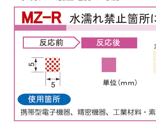 - 一旦与水接触便不会复原,适于确认浸水履历。